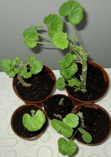 Visst ser pelargonierna livskraftiga ut, de har en härlig grön färg utom de två i den lilla krukan. Klarar de sig så är det bara kul.
